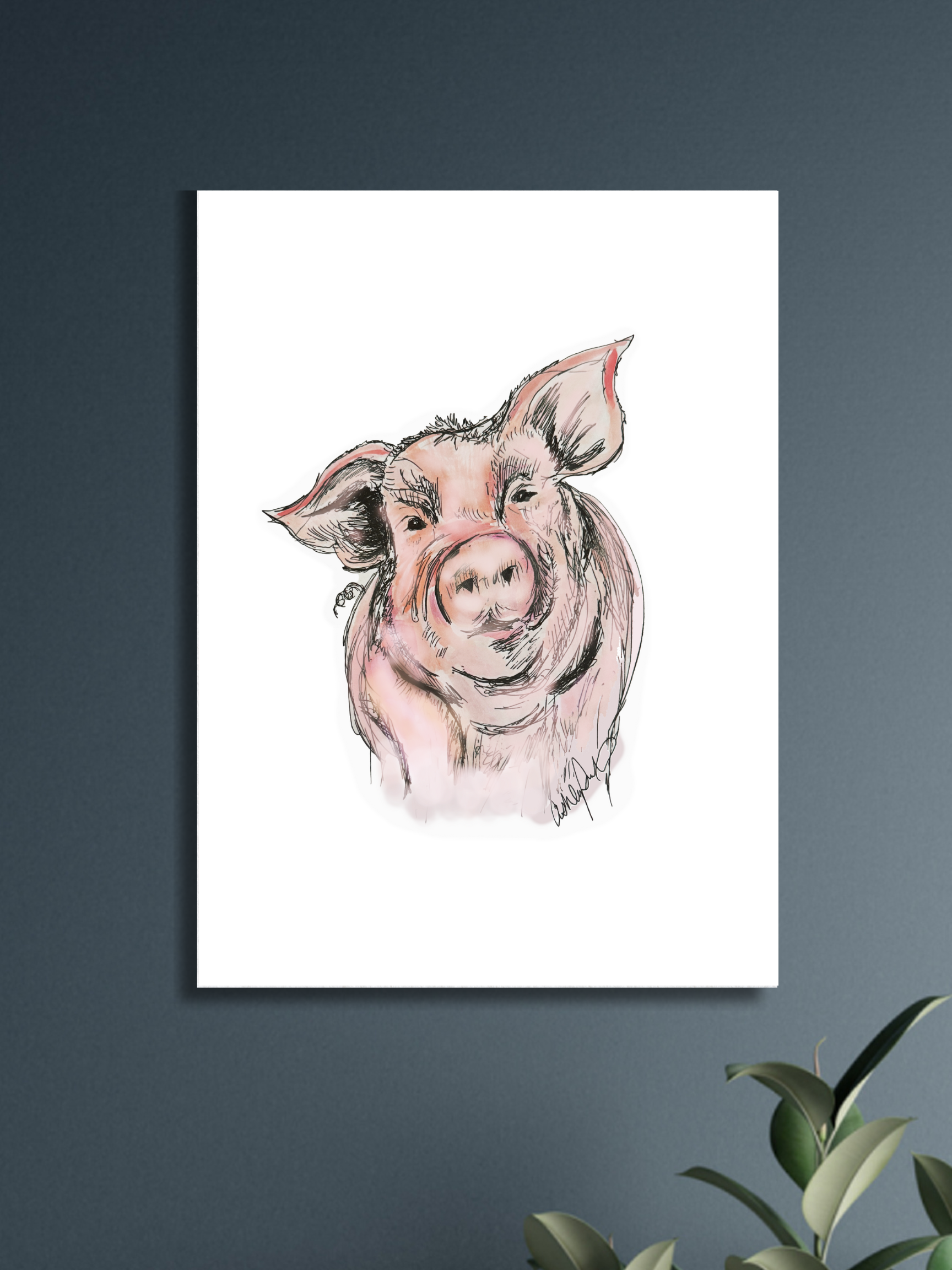 Pigs are cute. There, I said it. This pig has a particularly fun personality, so it brings a bit of cheer to your space. Pigs have soulful eyes and a playful demeanor, so this print is a fun way to add a little cheer and personality to any room. Pigs are known to be smart, but they've also symbolized bravery in some cultures - wild boars often charge forward even though they don't have extra help like horns, so they're pretty courageous.